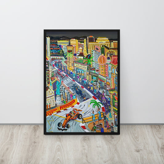 Lando , Max and Charles in Vegas - Framed canvas Print
